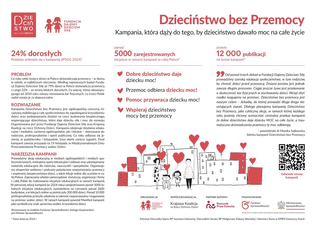 Dlatego powstał kampania „Dzieciństwo bez Przemocy”, która łączy obywateli, rodziców, nauczycieli, samorządowców i wszystkich, którym dobro dzieci leży na sercu.